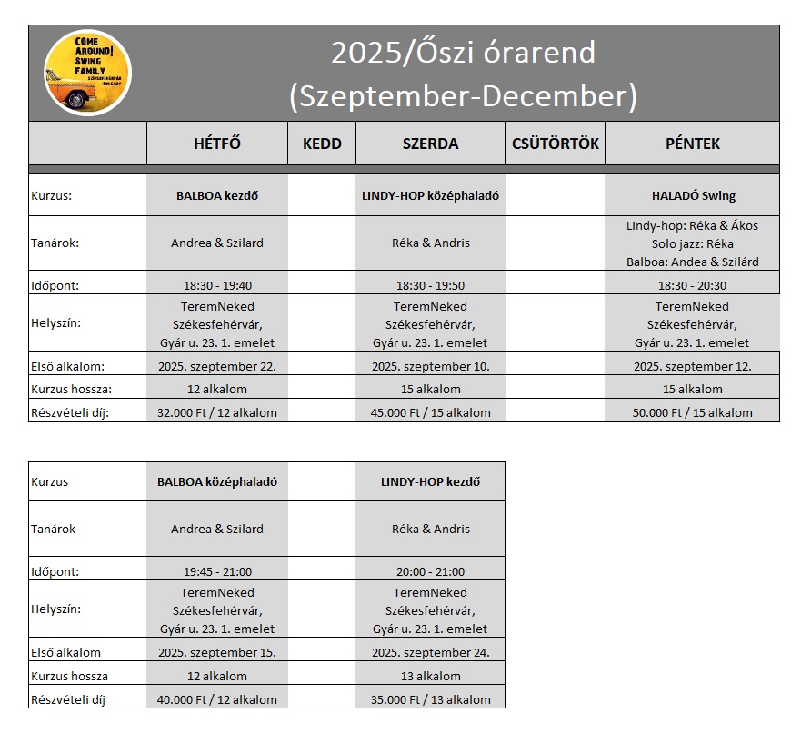 Örömmel jelentjük be, hogy a "nagy" érdeklődésre való tekintettel teljesen kezdő BALBOA kurzust indítunk.A 12 alkalmas kurzus alatt (2023 január és május vége közötti időszakban) a Come Around Swing Family szervezésében, Andi és Szilárd vezetésével a jelentkezők elsajátíthatják a balboa alapjait. A kezdő csapat fantasztikus emberekkel összeállt, de...